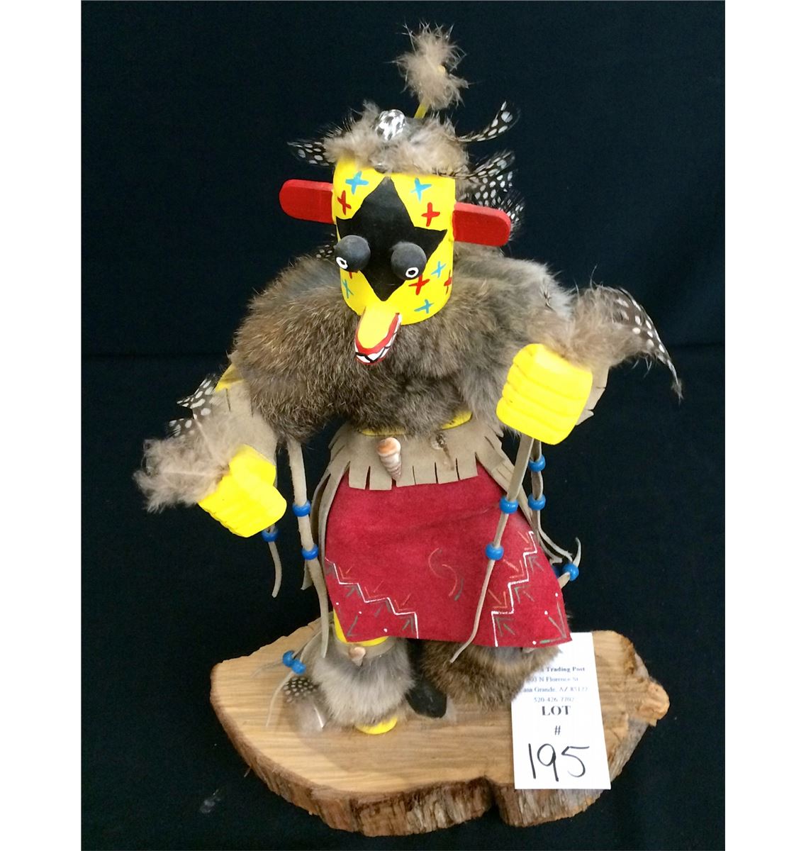 This mudhead Navajo doll measures 16" tall, is signed, and is in good condition.