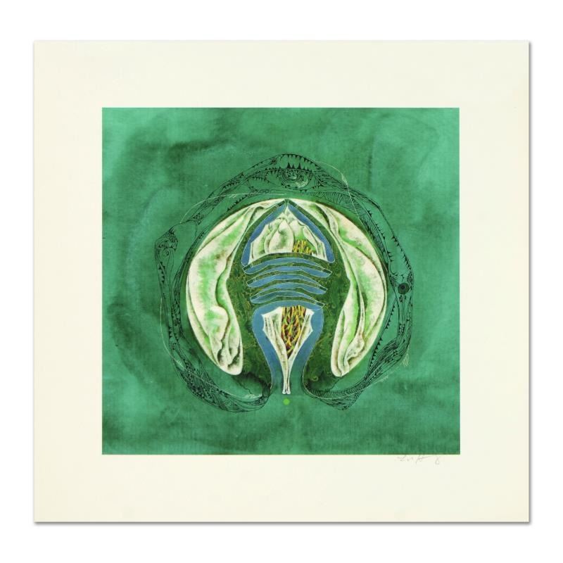 "Mudra Uttarabodhi, Epiphany" is an limited edition giclee on canvas, by Lu Hong. Hand signed by the artist, this piece comes with a letter of authenticity. Measures approx. 10" x 10" (image).