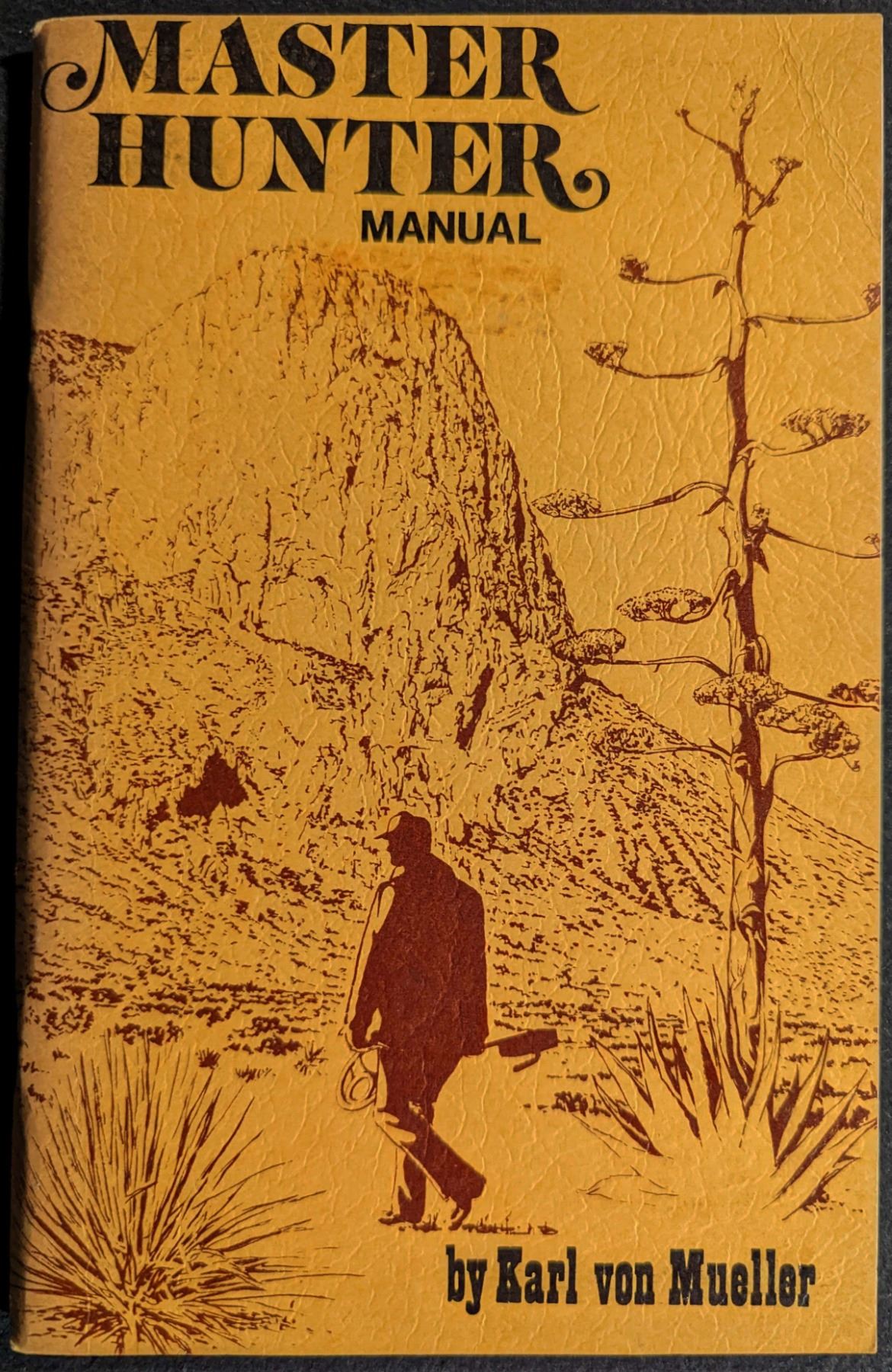 Mueller, Karl von. THE MASTER HUNTER MANUAL. Ram Publishing Company, Dallas. 1973. 12mo. (6), 88 pages. Original orange printed card covers. First edition. Illustrated. Fine. The Old Man was hired by Charles Garrett to write a user manual for the Master Hunter metal detector. 'This book, from the beginning, was Karl's idea,' wrote Charles Garrett in the Introduction. 'Karl is to be commended for a fine job, especially so because of his willingness to reveal this arsenal of his own private, tried and proved detector modus operandi.' That is why this is such a useful Manual. KvonM covered 'Treasure Hunting with the Master Hunter' (of course), then 'Coinshooting' (a term Karl coined), 'Prospecting,' 'Public Utilities,' 'Police Use,' and more. Metal detector technology has advanced since the 1970's.. the timeless wisdom presented in a few concise chapters here hasn’t. You've probably seen Garrett metal detectors in use by TSA at airports around the country. Very scarce.
