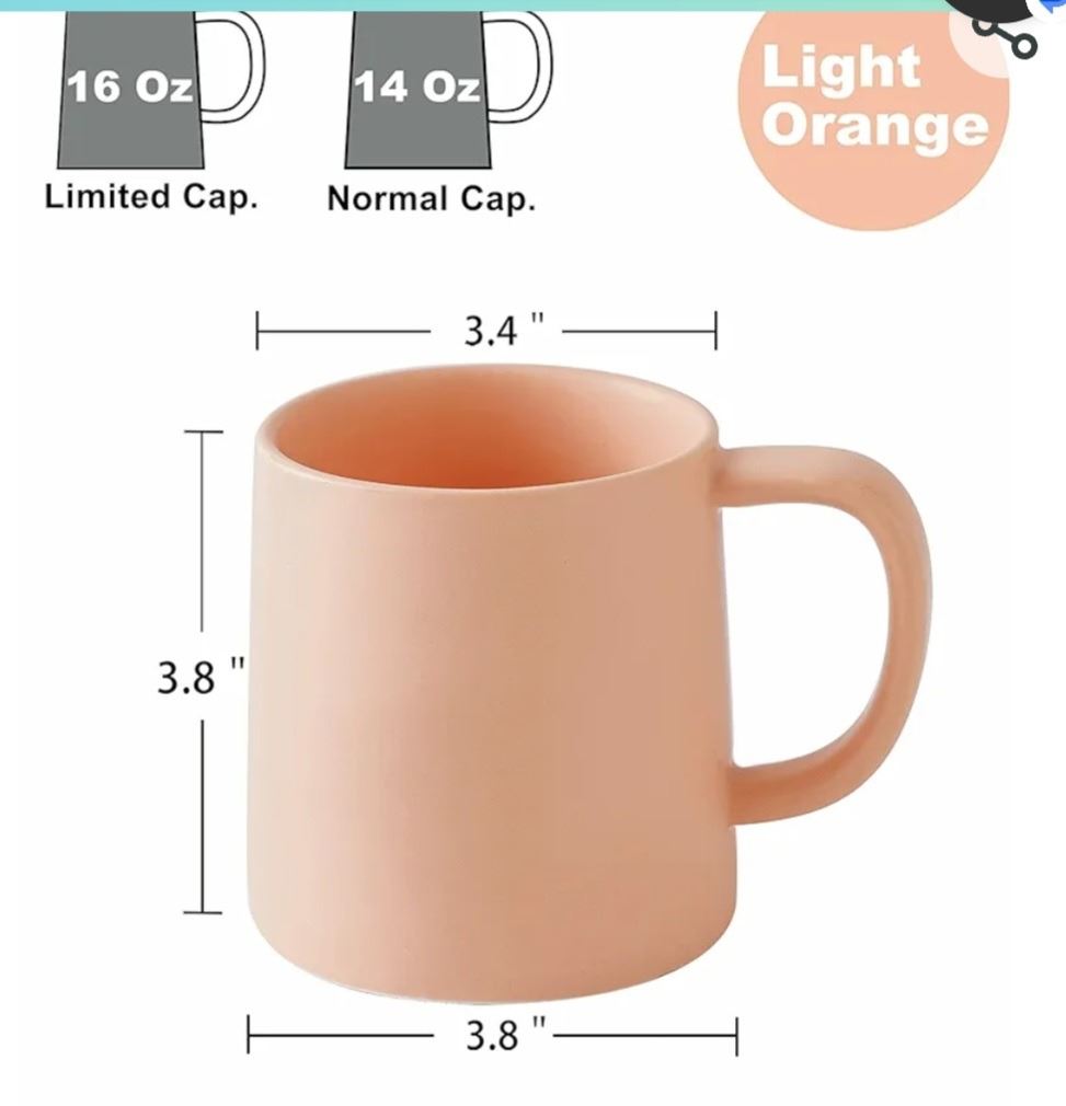 T-ware set of 2, 16oz large porcelain coffee mugs, Color light matte orange, new
