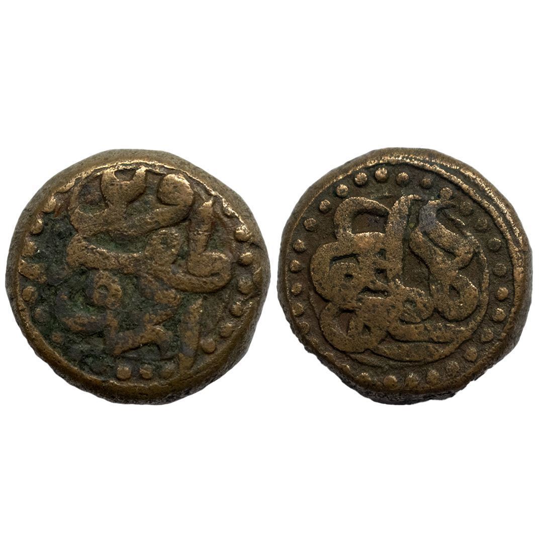 Mughal, Akbar (AH 963-1014, 1556-1605 AD), Copper Dam, 20.00 gms, Urdu Zafar Qarin Mint, KM # 34.1, very fine with dotted borders on both sides, very scarce in this quality and strike.