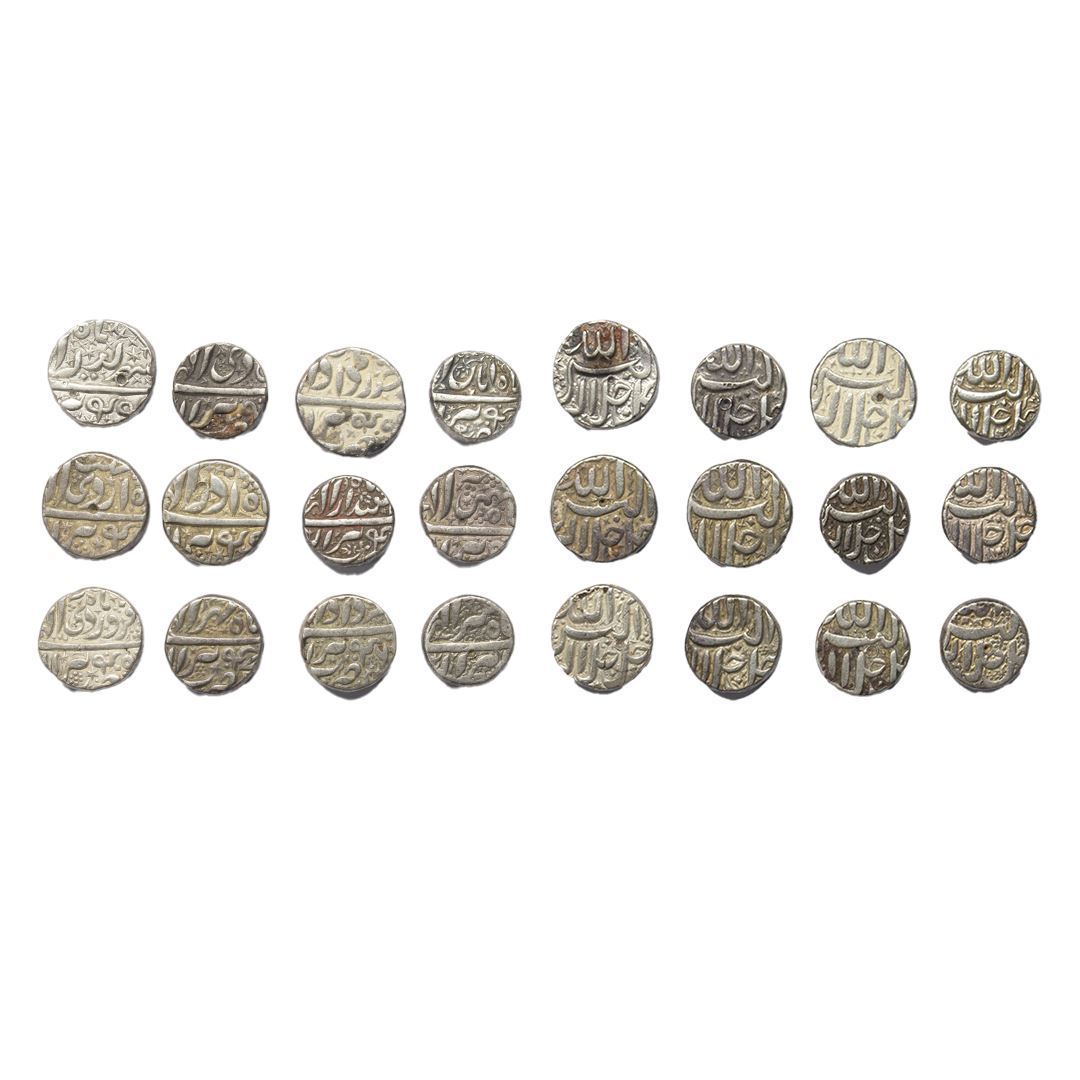 Mughal, Akbar (AH 963-1014, 1556-1605 AD), Set of 12 Ilahi Months, Silver Rupee, Berar Mint, KM # 93.6, very fine, very rare as a set. The set includes a bird type coin of Berar.