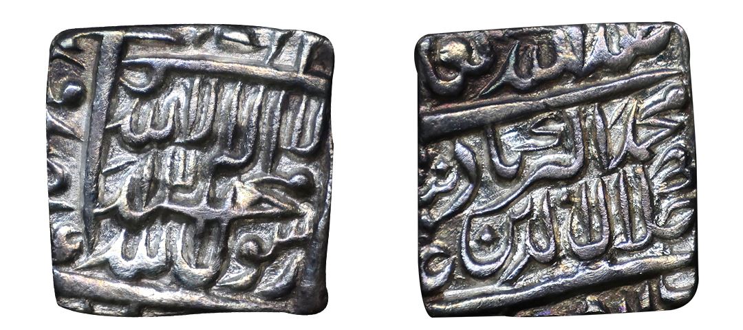 Mughal, Akbar (AH 963-1014, 1556-1605 AD), Silver Square Rupee, 11.00 gms, mint off flan, very fine+, scarce.