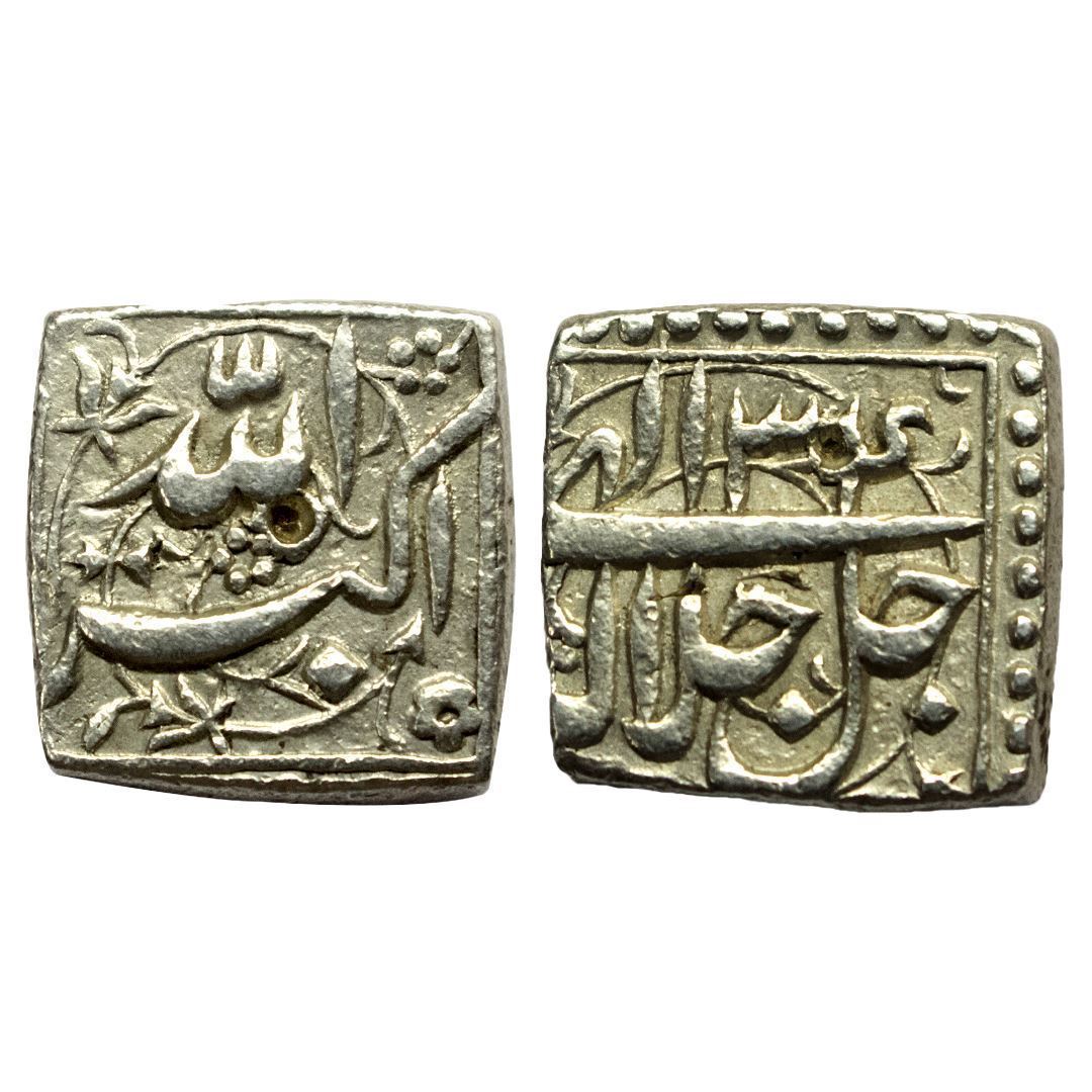 Mughal, Akbar (AH 963-1014, 1556-1605 AD), Silver Square Rupee, 11.38 gms, Mintless, Monthless, Type, Jalla Jalalahu, Year 34, KM # 91.1, very fine+, scarce.