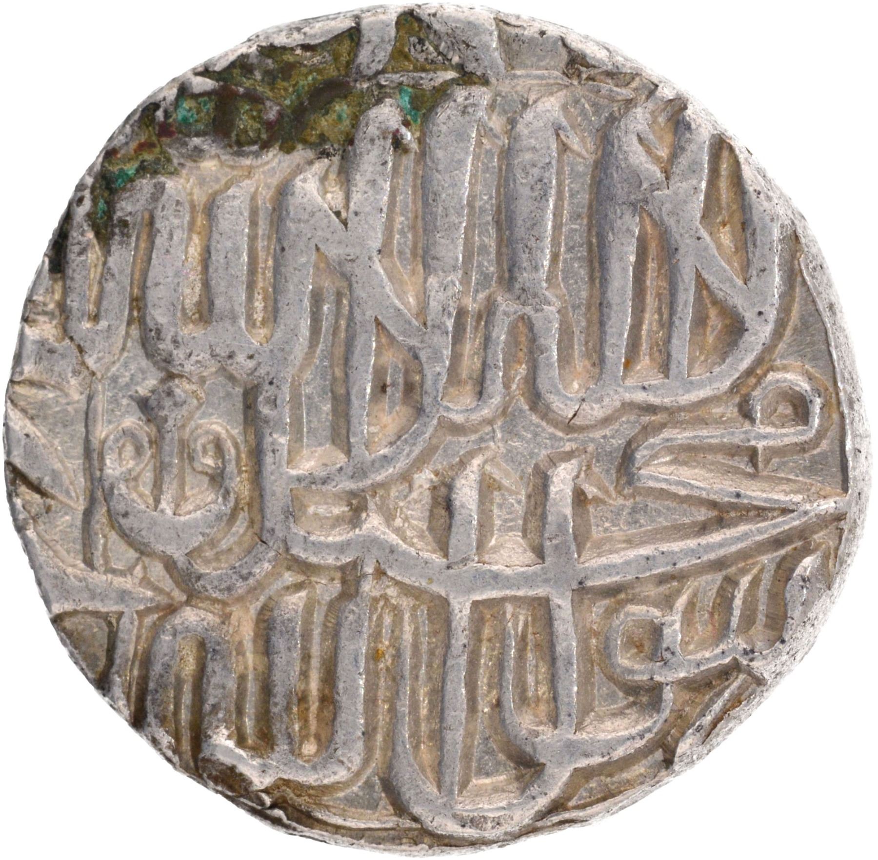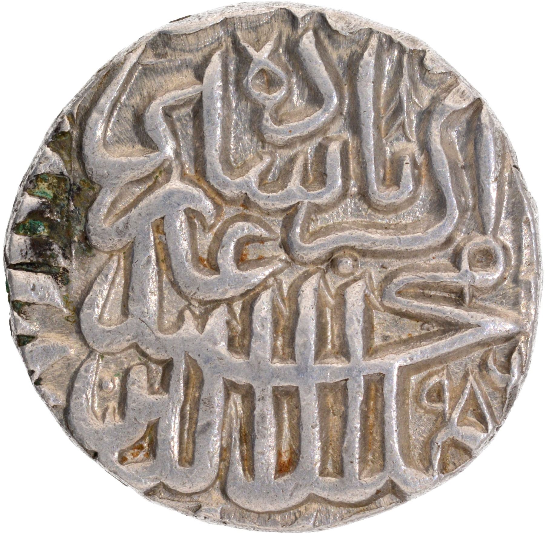 Akbar (AH 963-1014/1556-1605 AD),Bang Mint (off flan) by Style, Silver Rupee, AH 986, Obv: Arabic legend The Kalima Shahada, Rev:Persian legend Jalal ud din Muhammad Akbar Badshah Ghazi with Hijri year 986, 11.41g, 21.83mm,test mark, XF-AU, Scarce.