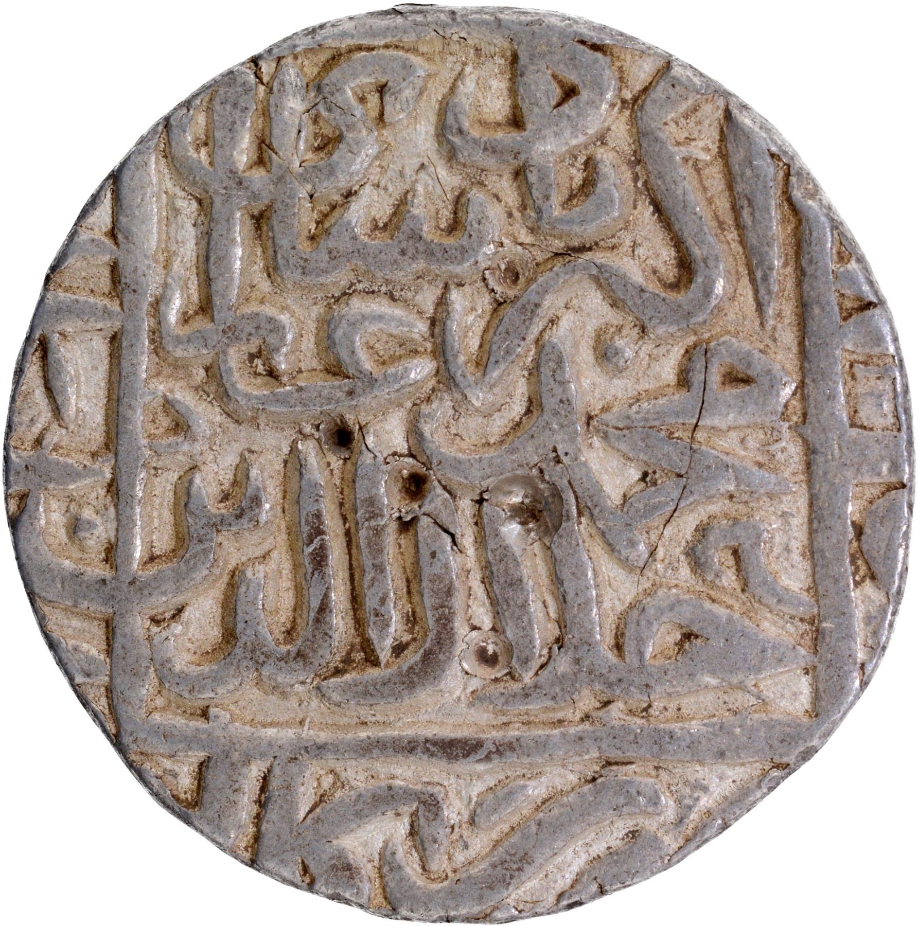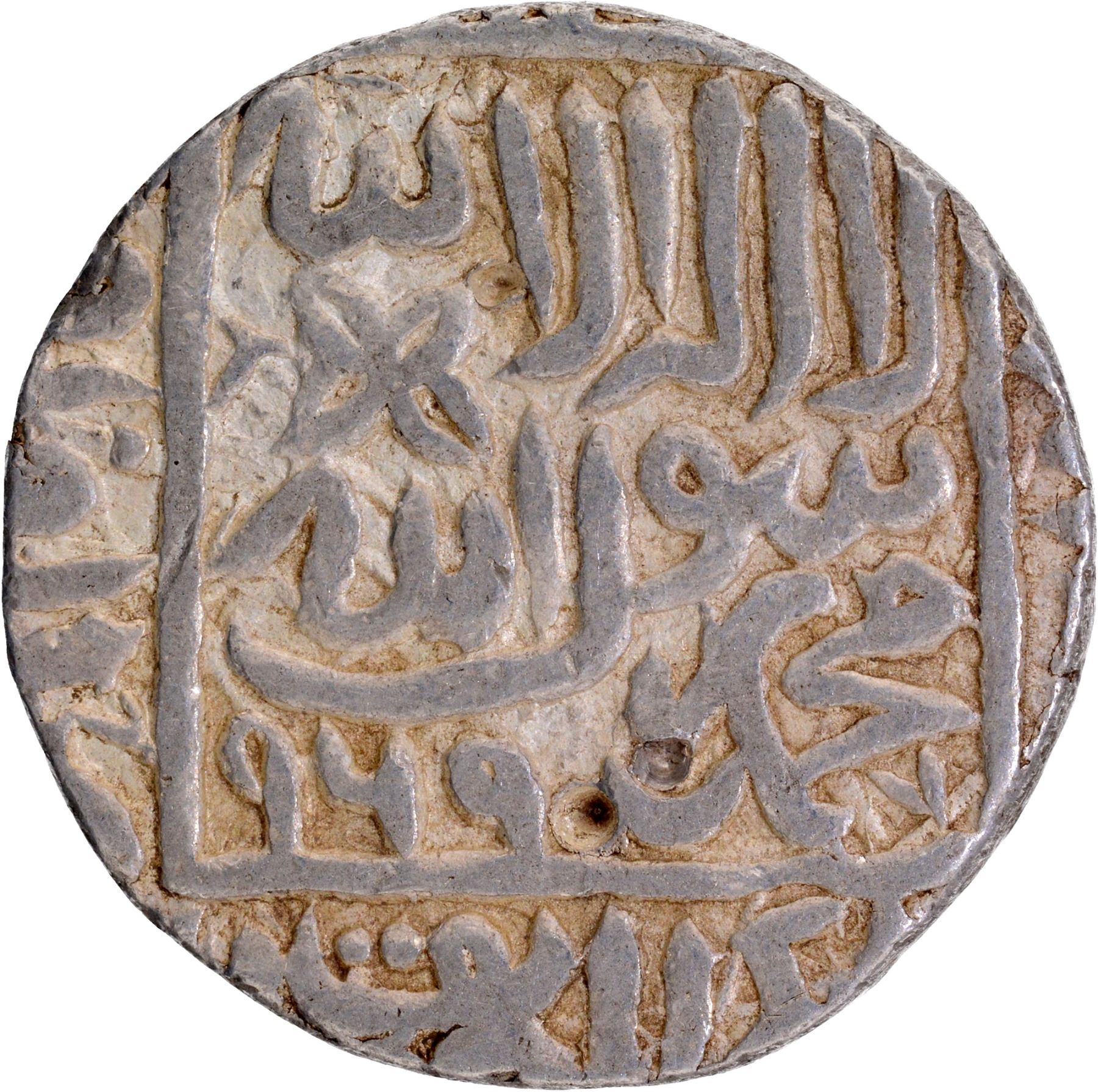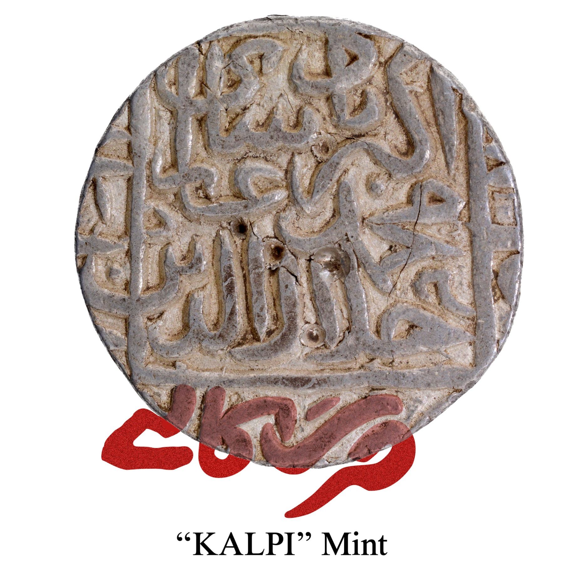 Akbar (AH 963-1014/1556-1605 AD), Kalpi Mint,Silver Rupee,AH 969,Obv: Arabic legend The Kalima Shahada, Hijri year 969 flower symbol completely visible within a square the four Caliphs name around,Rev: Persian legend Jalal-ud-din Muhammad Akbar Badshah Ghazi,11.36g, 26.10mm, (Variant of KM # 80.11, the floral mint mark is unlisted),test marks, about extremely fine, VeryScarce.