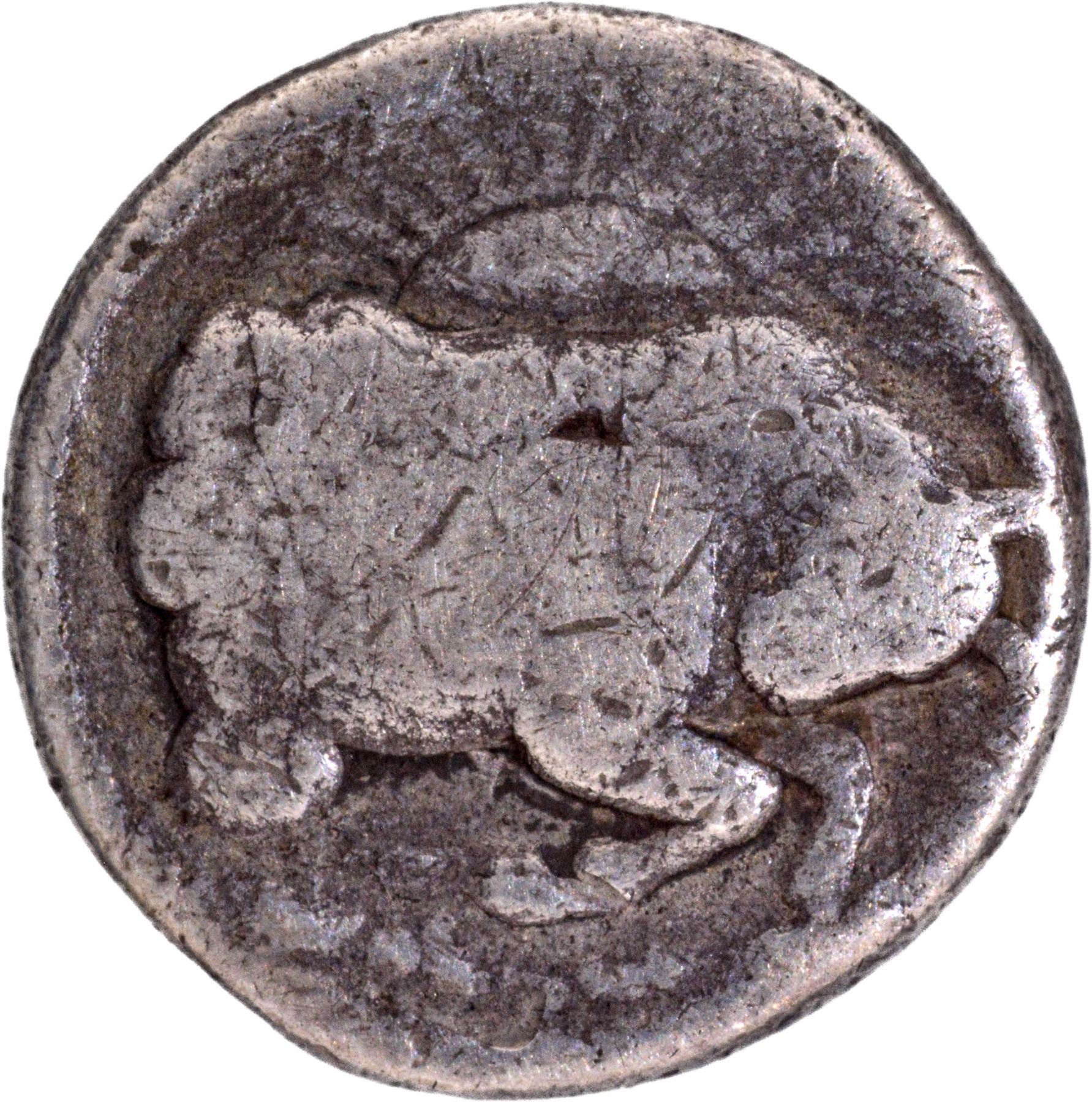 Jahangir (AH 1014-1037 /1607-1627 AD), Ahmadabad Mint, Silver Zodiac Rupee, AH 1027/13 RY, 'Taurus' Sign, Corresponding to Ilahi month Ardibihisht, Obv: the constellation of Taurus(bull) facing right, radiate sun behind, at bottom sana 13 julus, Rev: Persian legend "Jahangir Badshah Akbar Badshah", at the bottom "zarb Ahmadabad" completely visible & Hijri 1027 on top, 10.9g, 19.95mm, (KM # 150.5), test mark, about very fine, Very Rare.