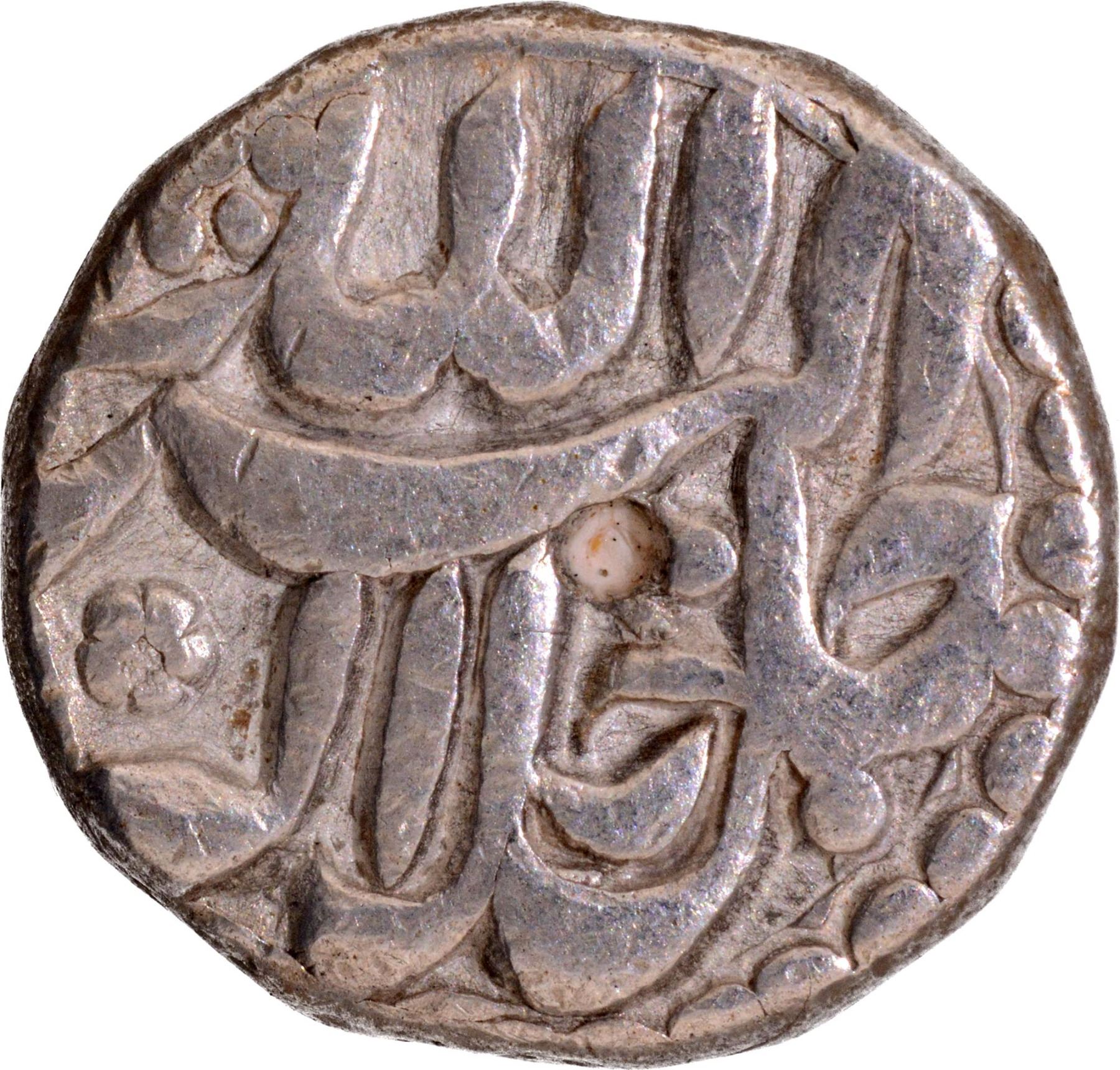 Akbar (AH 963-1014 /1556-1605 AD), Sitpur Mint, Silver Rupee, Elahi 49, Month Mihr (Libra), Obv: Arabic legend "Jalla Jalaluhu Allahu Akbar" within a dotted border, Rev: Persian legend "zarb Sitpur" with "Elahi 49 Mihr" month within a dotted border, 11.30g, 19.26mm, (KM # 93.18), test marks, about very fine, Rare.