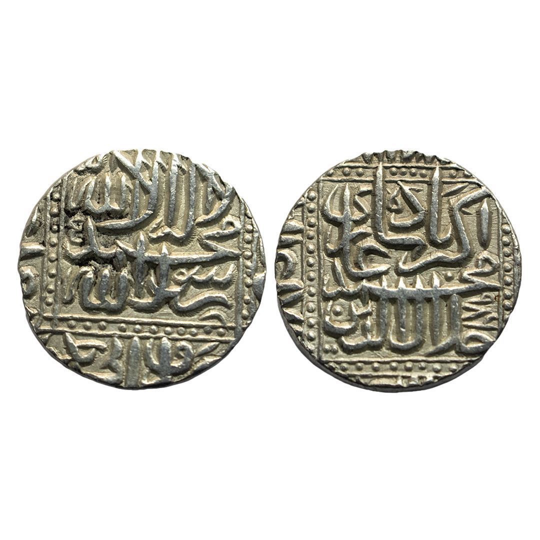 Mughals, Akbar (AH 963-1014 / 1556-1605 AD), Silver Rupee, 11.42Grms, Dar al-khilafat AhmadabadMint, AH 986, Kalima type, ruler;s name and title on rev. Extremely Fine, Rare.