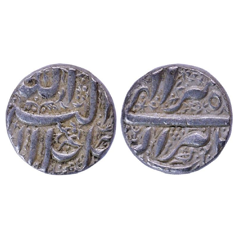 Akbar, Silver Rupee, Berar Mint, 11.43gms, Ilahi month Mihr, a bird below the mint name with floral design. (KM 93.6), uncirculated, Rare.