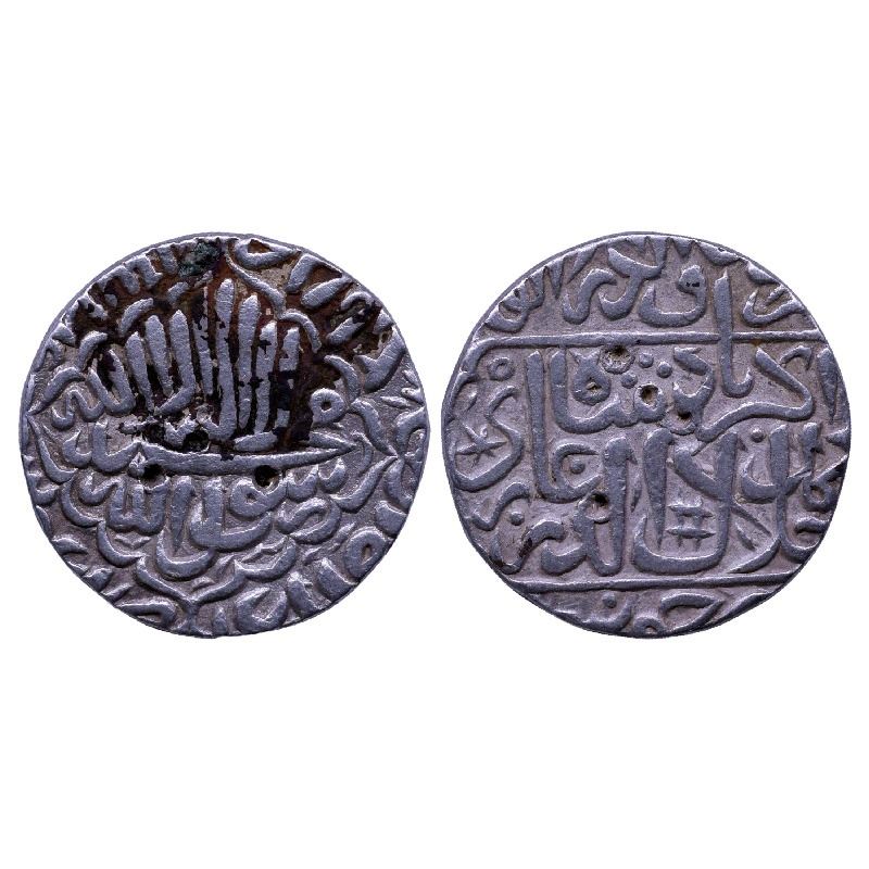Akbar (AH 963-1015 / 1556-1605 AD), Silver Rupee, 11.40gms, Jaunpur Mint, Kalima within mihrabi-shaped cartouche. (A. Liddle, type S9).Very Fine+, Rare.