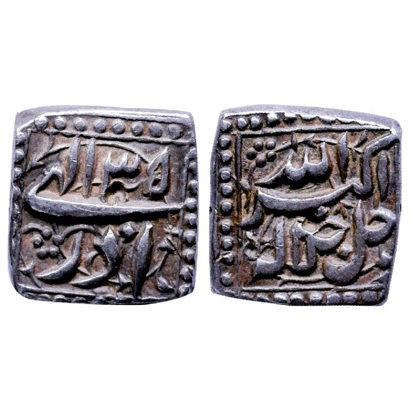 Akbar, Silver Square ½ Rupee,5.58gms, Mintless type, Ilahi month Azar, Year 35. (KM 63.1).Extremely Fine, Rare.