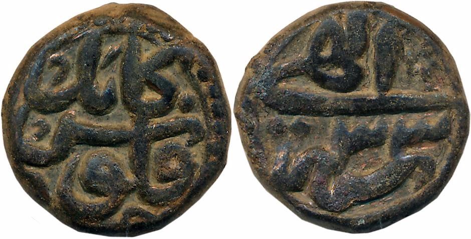 Akbar, Copper 1/2 Dam, 9.99g, Kabul Mint, Ilahi Year 33 (KM# 23.4). Very fine.