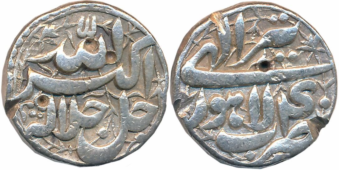 Akbar, Silver Rupee, 11.12g, "Jalalahu" type, Lahore Mint, Ilahi Month Tir, Year 40 (KM# 93.11). Shroff marks otherwise very fine.