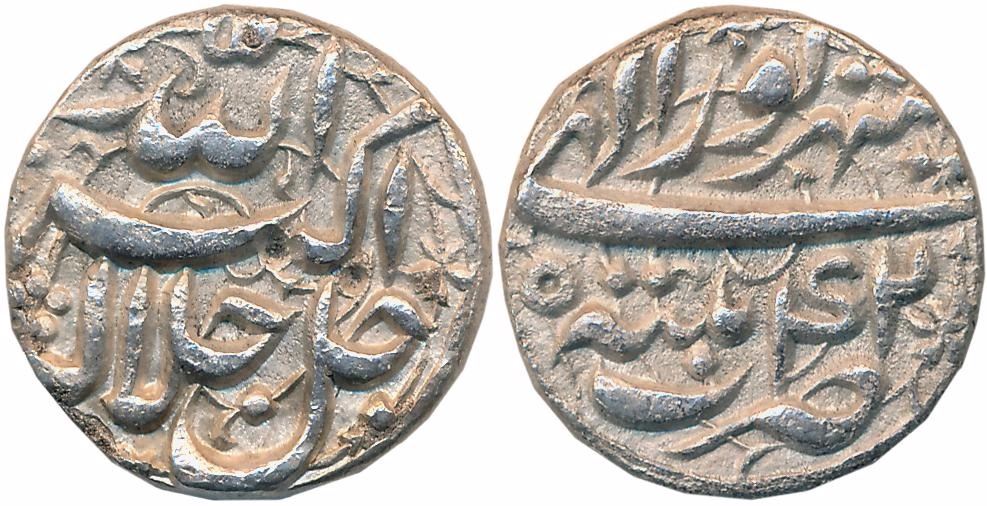 Akbar, Silver Rupee, 10.76g, "Jalalahu" type, Patna Mint, Ilahi Month Shahrewar, Year 42 (KM# 93.14). Sharp strike, extremely fine, rare.
