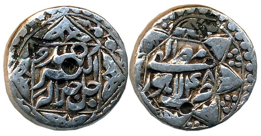 Akbar, Silver 1/2 Rupee, 5.67g, “Jalalahu- Octagonal border” type, Lahore Mint, Ilahi Month Mihir, Year 48 (KM# 67.1). Very fine, rare.