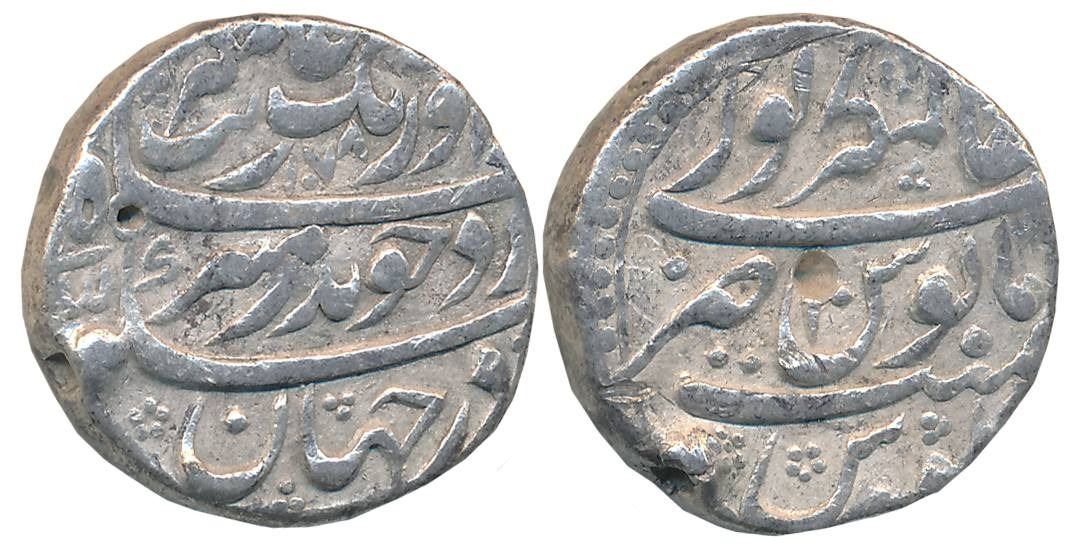 Aurangzeb, Silver Rupee, 11.42g, Alamgirpur Mint, AH 1078/ RY 10, Complete Mint name on top of reverse (KM# 300.9). Very fine.
