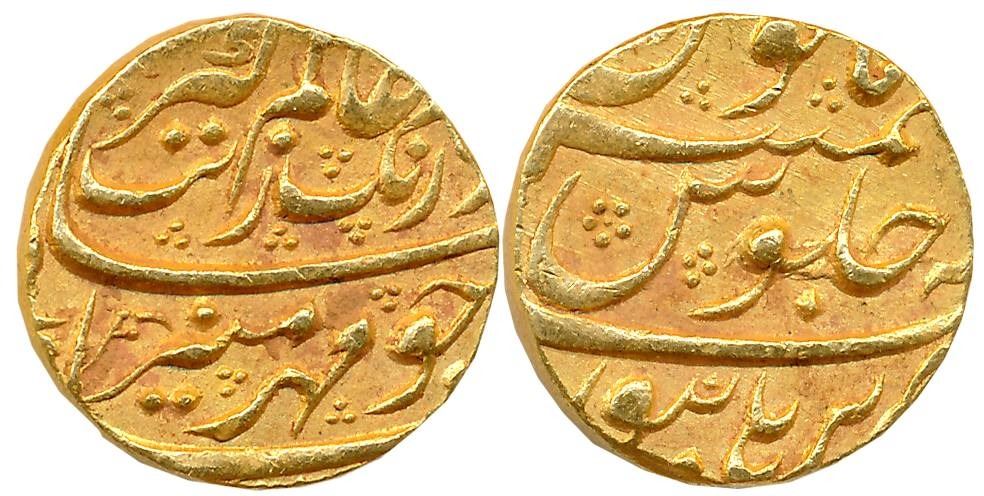 Aurangzeb, Gold Mohur, 10.97g, Burhanpur Mint (KM# 315.16). About extremely fine.