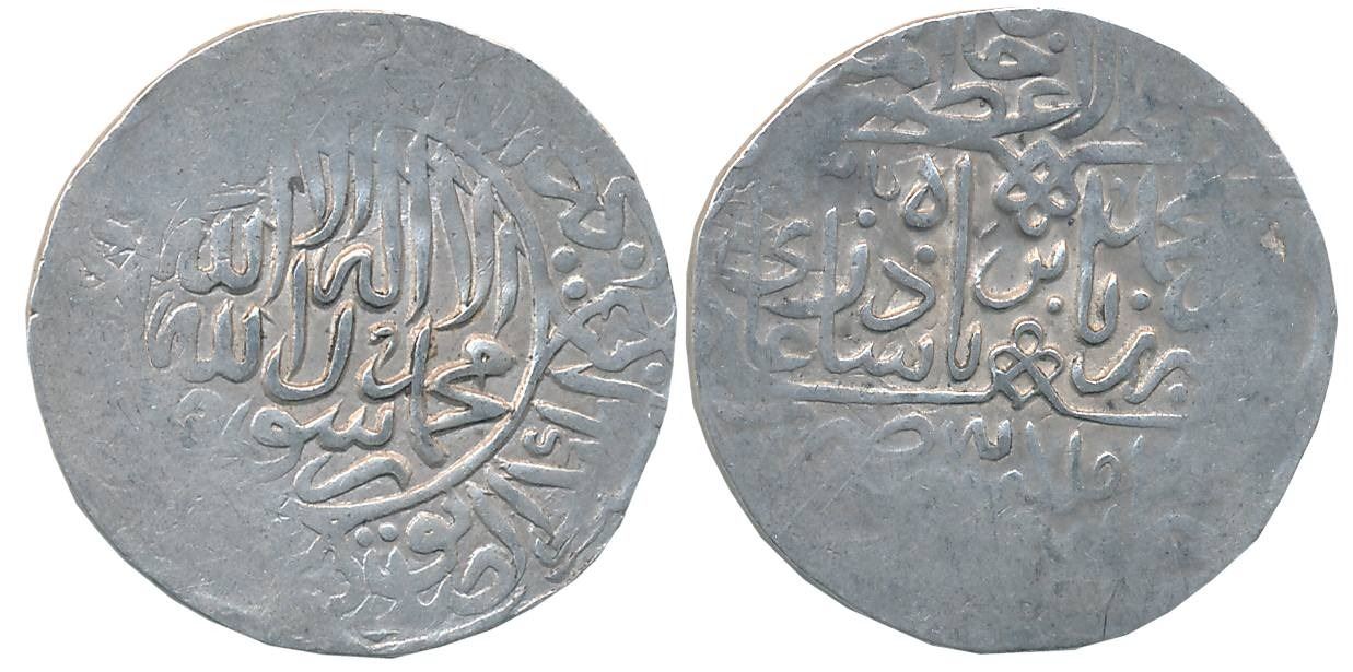 Babur, Silver Shahrukhi, 4.76g, Agra Mint (partially visible), AH 93X, Obv: Shahada in circle, names and titles of four Rashidoons around. Rev: In central cartouche, AH date and Babur's full name and titles Zahir al-Din Muhammad Babur Badshah Ghazi, below it is invocation Khallada Allah Mulkahu wa Saltanahu and mint-name (Rahman 100.01-100.14). Very fine+, rare.