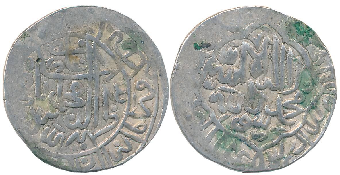 Babur, Silver Shahrukhi, 4.63g, "Mintless and dateless" type, Obv: Name of the ruler Zahiruddin Muhammad Badhshah Ghazi in circle, other titles in margin, Rev: Kalima within circle, names of four Caliphs and their titles around (Rahman 80-01). Very fine+ for type, rare.