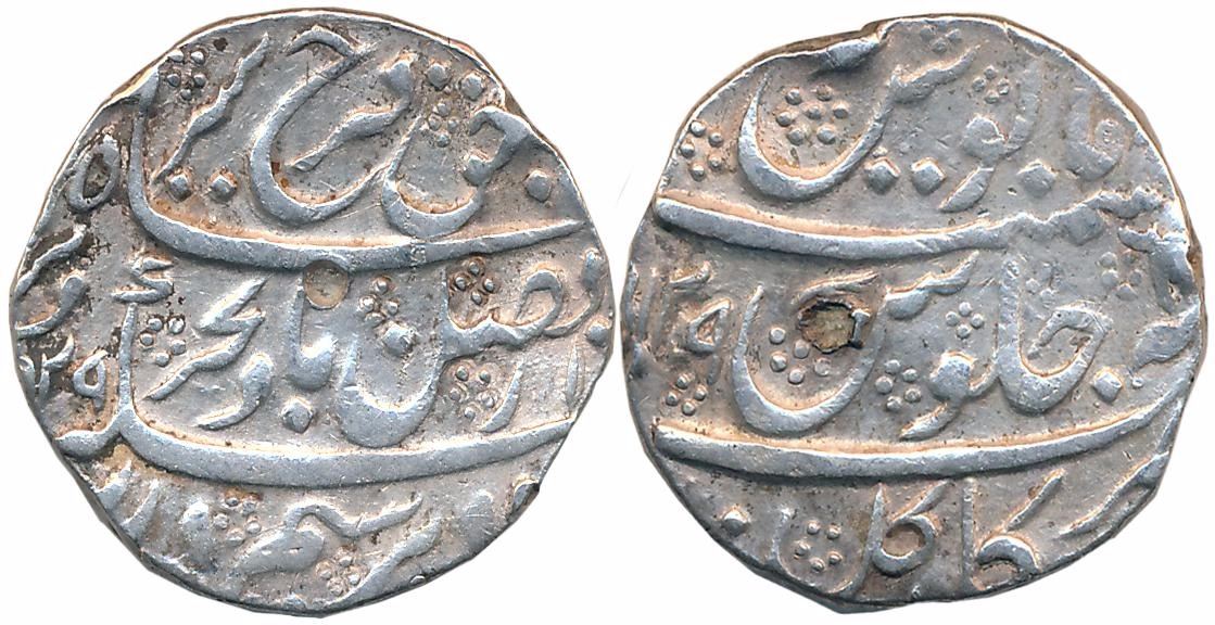 Farrukhsiyar, Silver Rupee, 11.49g, Sikakul Mint, AH 1129/ Ry 6, Hijri year 1129 on both sides (KM# 377.57). Very fine, very rare.
