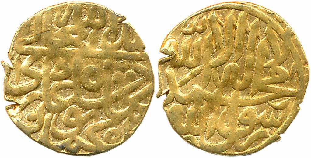 Humayun, Gold 1/16 Ashrafi, 0.65g, "Badakhshan" type, Mintless, Obv: Invocation ‘Khallada Allah Ta’ala’ above the king’s name, Rev: Shahada. Extremely fine, rare.