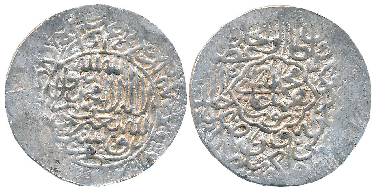 Humayun, 1st reign, Silver Shahrukhi, 4.77g, Agra Mint completely visible, Obv: Shahada and invocation “Yarzaqu Allah Man Yashao ba-Ghayr Hisab” in circle; names of Rashidoons and their titles around, Rev: “Muhammad Humayun Ghazi” in a Mihrab-shaped Cartouche, other titles and mint-name in margin. Very fine+, rare.