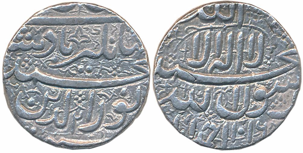 Jahangir, Silver Jahangiri Heavy Rupee, 13.43g, Ahmedabad Mint, AH 1016/ RY 2 (KM# 152.2). Very fine+, rare.