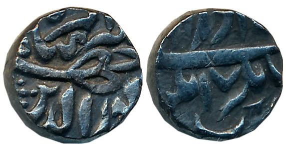 Jahangir, Silver 1/4 Rupee, 2.77g, “Nur ud din” type, Jahangirnagar Mint, RY 17 (KM# 132.5). About very fine, rare.