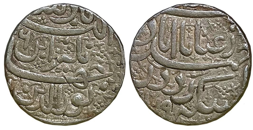 Jahangir, Silver Heavy Rupee, 14.15g, “Inayat” couplet, Ahmedabad Mint, AH 1019/ RY 6 (KM# 158.3). Very fine+.