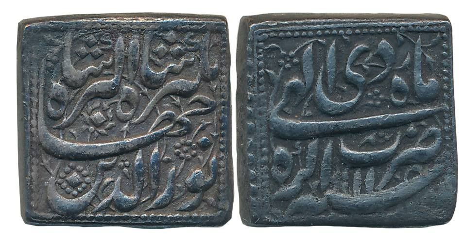 Jahangir, Silver Square Rupee, 11.36g, “Nur ud Din” type, Agra Mint, Ilahi Month Di, RY 11 (KM 147.1). Very fine, rare.