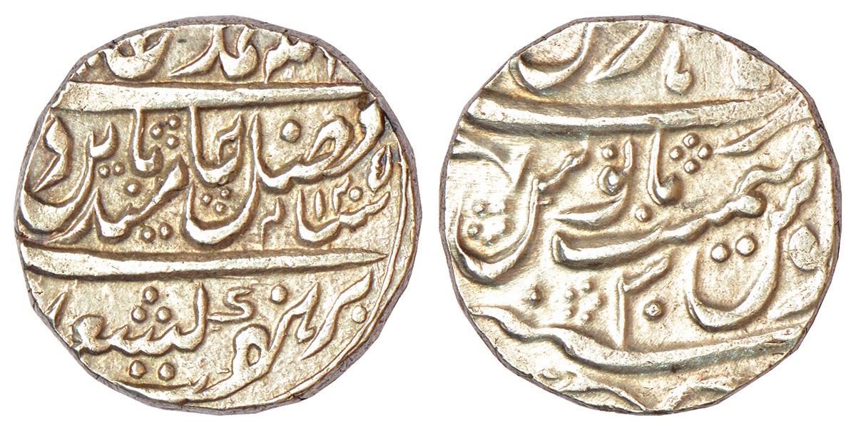 Mughals: Mughal Potentates, local Zamindar issue, silver rupee, Hathras mint at top, in the name of Shah Alam II, AH 1205/RY 30, 11.15g.