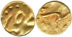 Muhammad Shah, Gold 1/2 Fanam, 0.18g, Karpa Mint. Complete Mint name on reverse (KM# C440.1). Very fine+.