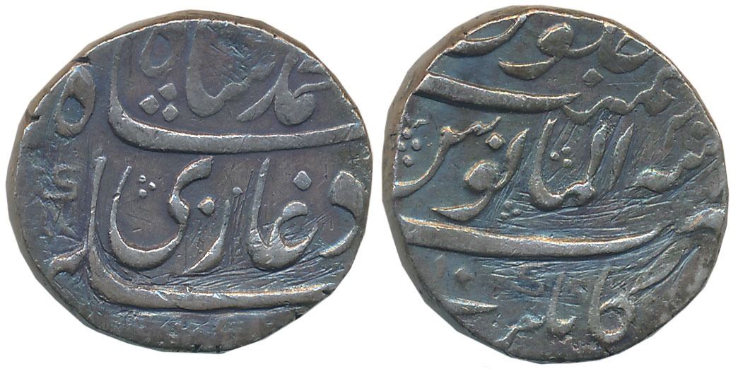 Muhammad Shah, Silver Rupee, 11.26g, “Alam Panah” Couplet, Kankurti Mint (KM# 436.35). Very fine.