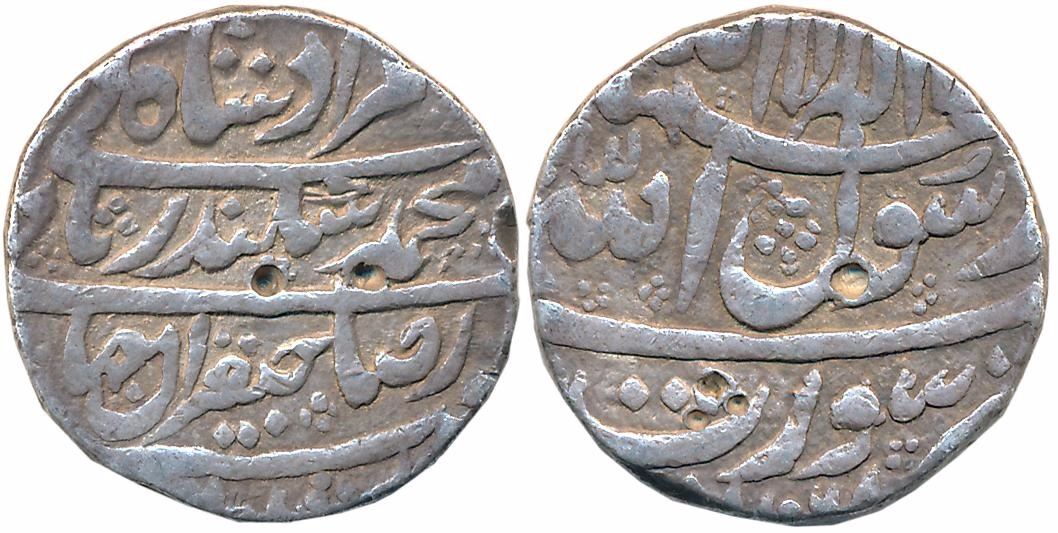 Murad Bakhsh, Silver Rupee, 11.45g, "Four line legend" type, Surat Mint (KM# 271.1). Complete name of ruler on top of obverse. Very fine+, very rare.
