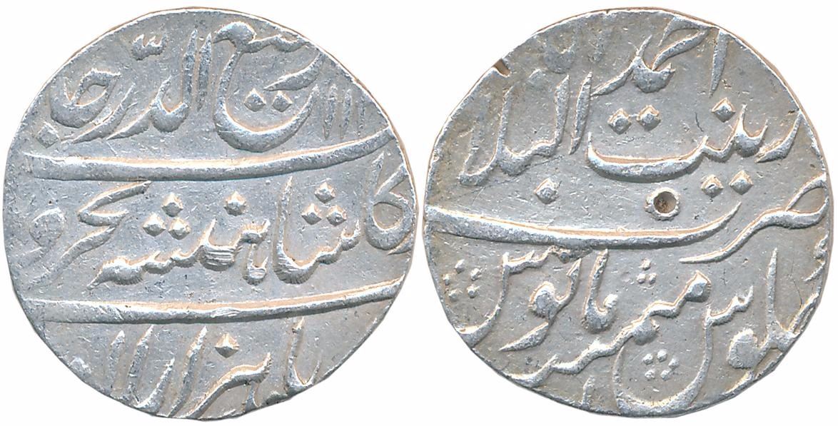 Rafi ud Darjad, Silver Rupee, 11.56g, Zainat ul Bilad Ahmedabad Mint, AH 11XX (KM# 405.1). Complete mint name on top of reverse. Very fine+, rare.