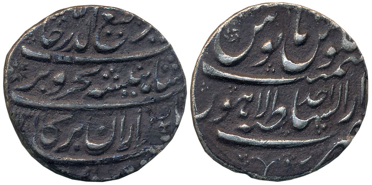 Rafi ud Darjat, Silver Rupee, 11.40g, Broad flan, Dar us Sultanate Lahore Mint, AH 1131/ RY Ahad, Complete Mint name on center of reverse (KM# 405.13). Patinated, very fine+, rare.