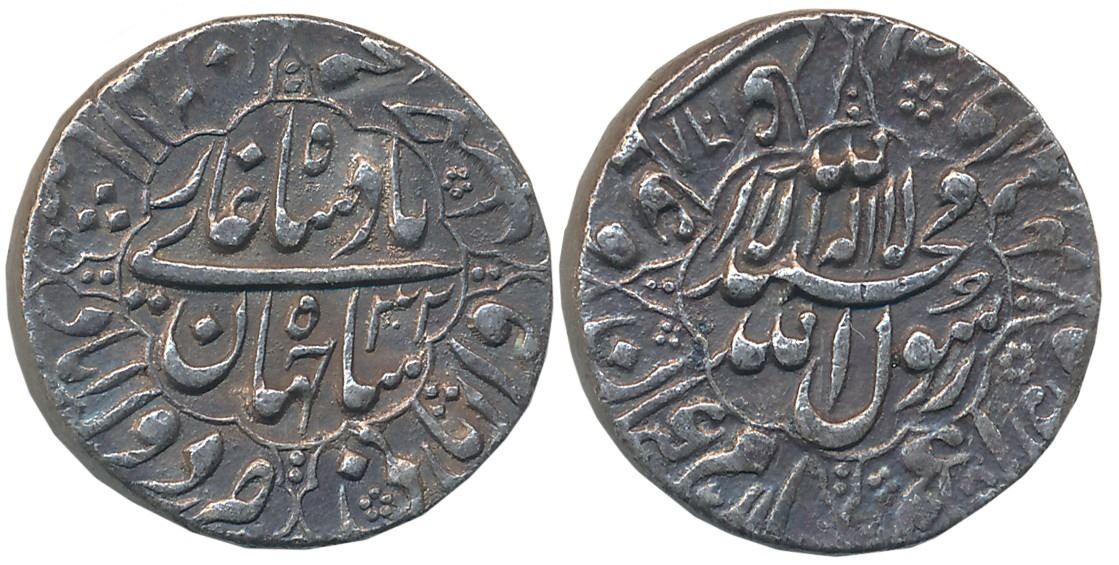 Shah Jahan, Silver Rupee, 11.46g, Daulatabad Mint, AH 1068/ RY 32, central inscription within foliated eight foil (KM# 232.1). Patinated, beautiful rainbow toning, about uncirculated, rare in this grade.