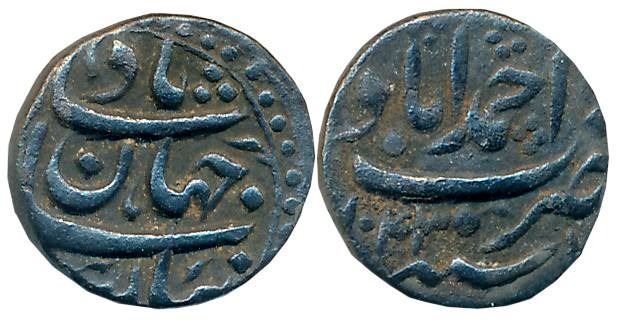 Shah Jahan, Silver 1/8 Rupee- Nisar, 1.33g, Ahmedabad Mint, AH 1043, Obv: Persian legend “Nisar Shahjahan Badshah”, Rev: Mint name and AH date. Extremely fine, extremely rare.