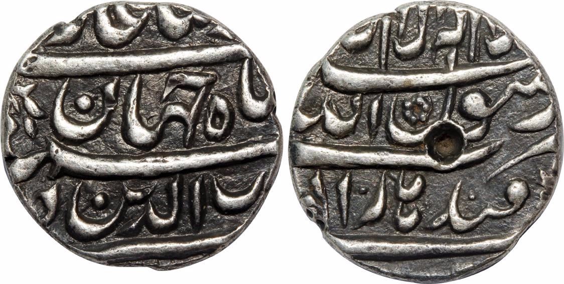 Shah Jahan, Silver 1/2 Rupee, 5.67g, Qandahar (South) Mint (Not listed in KM). Very fine+, extremely rare./nlWether this coin struck at Qandahar- Afghanistan or Qandahar Maharashtra is debatable but the find spot suggest cataloguer to belive this as a Qandahar of Maharashtra.