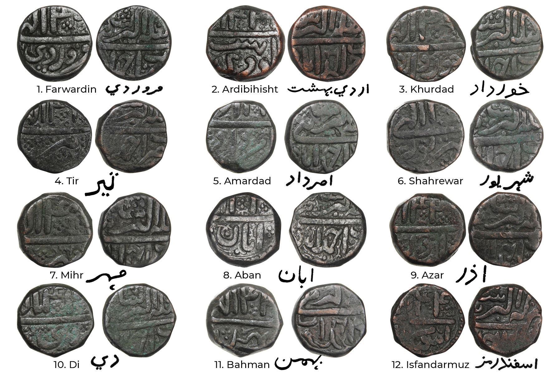 Shah, 1. Farwardin, IE.45, 2. Ardibihisht, IE.44, 3. Khurdad, IE.40, 4. Tir, IE.4X, 5. Amardad, IE.4X, 6.
