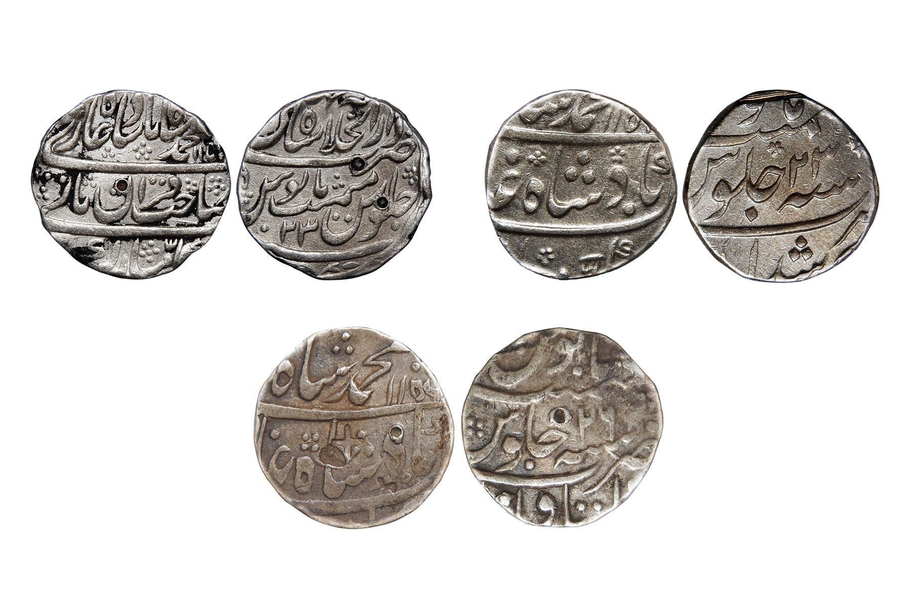 Shahjahanabad (AH 11xx / RY-23), Murshidabad (AH 115x / RY-23), and Itawa (AH 1156 / RY-26), Scarce
