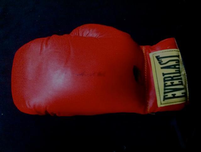 Muhammad Ali Autographed Boxing Glove - A size 12 Red Everlast lace up professional boxing glove signed by "The Champ". Documentation included.