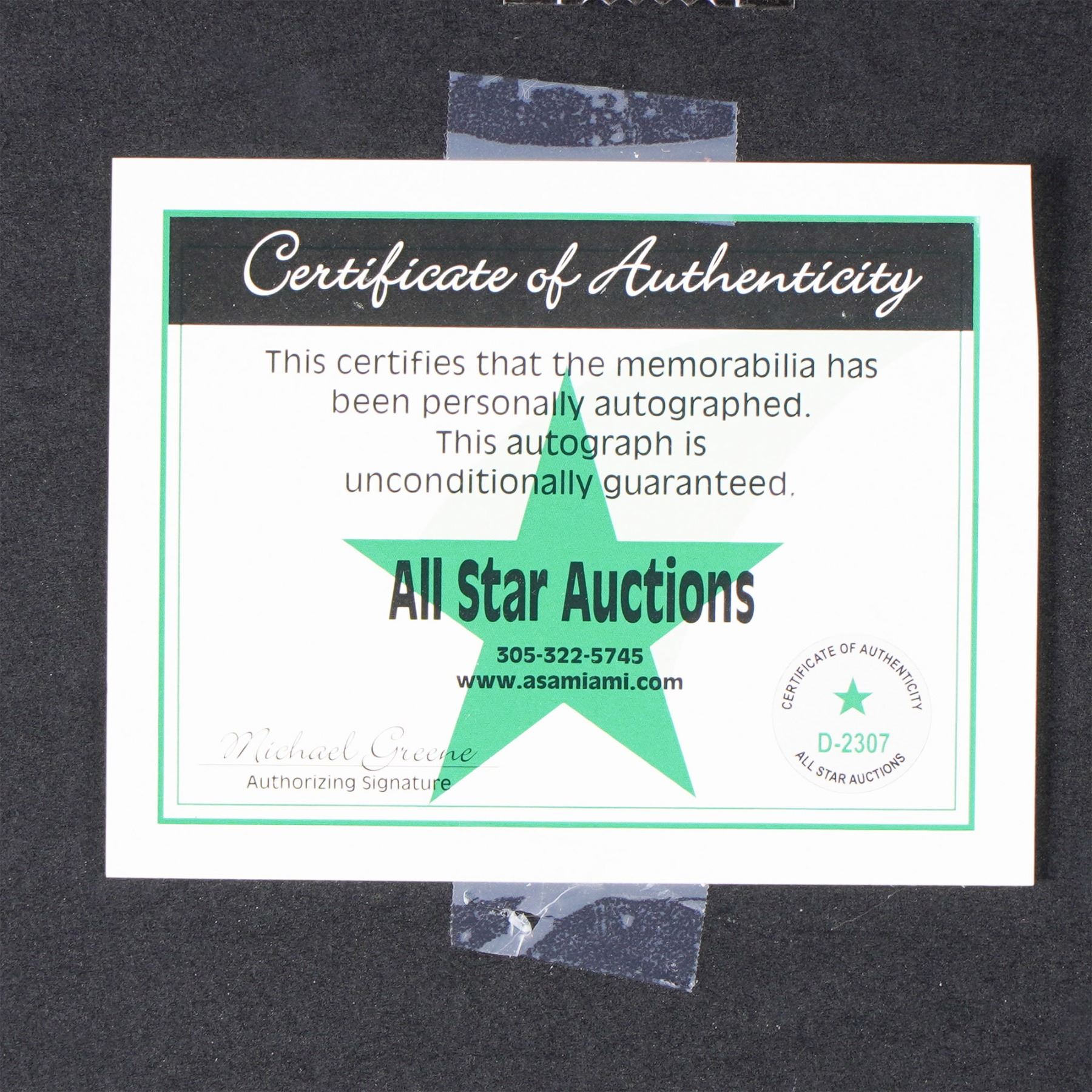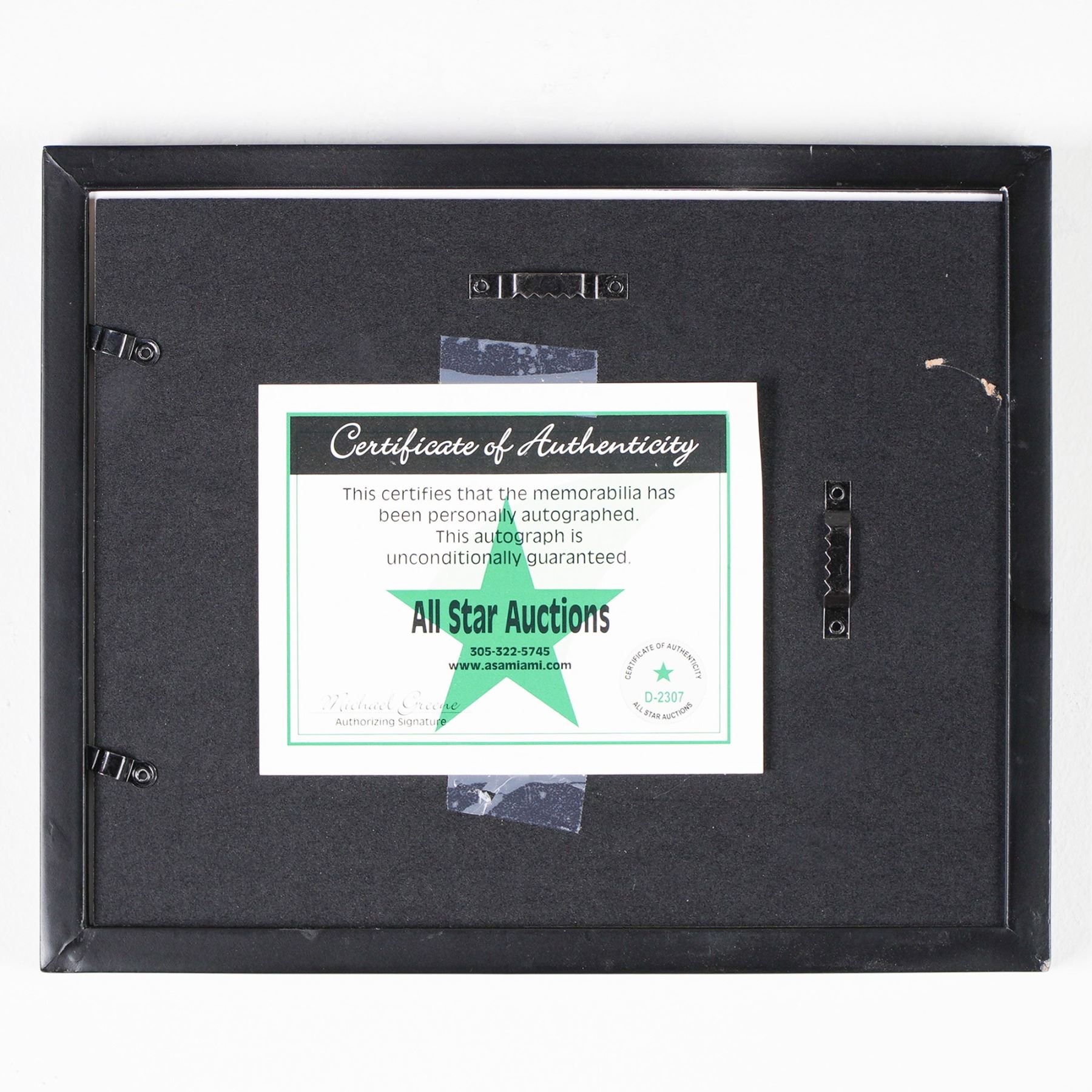 This framed "Boxing Immortals" photograph features the legendary Muhammad Ali and Joe Frazier in an intense face-off, capturing their historic rivalry. Both boxing icons have personally signed the image in bold blue ink, adding to its collectible value. The piece is professionally framed and matted, accompanied by a descriptive plaque highlighting their epic trilogy, in which Ali won two of their three legendary bouts. It includes a Certificate of Authenticity (COA) #D2307 from All Star Auctions, ensuring the authenticity of the autographs. A prized addition for boxing fans and sports memorabilia collectors.