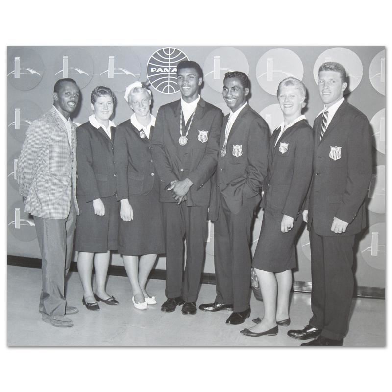 Own a piece of sports history with this Muhammad Ali photo with fellow Olympians. Taken at the peak of his success as one of the greatest heavyweight championship boxers of all time, this photo is sure to complement any sports memorabilia collection. This photograph is on Kodak Professional Endura paper. Measures approx. 20" x 16" (no border).