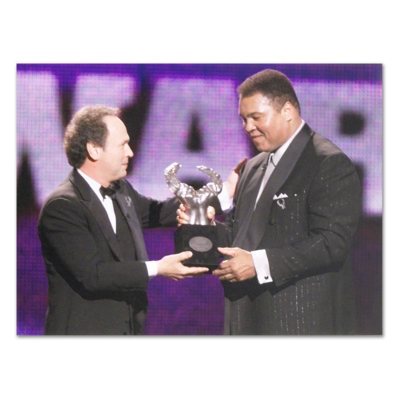 Own a piece of sports history with this Muhammad Ali photo. Taken at the peak of his fame as one of the greatest heavyweight championship boxers of all time, this photo is sure to complement any sports memorabilia collection. This is a licensed photograph on Kodak Professional Endura paper. Measures approx. 40" x 30" (no border).