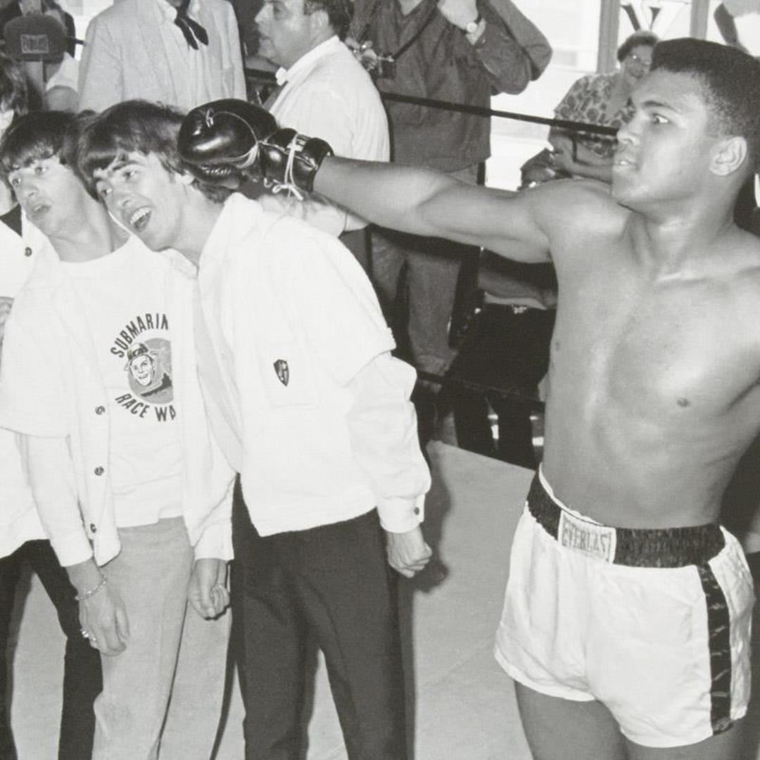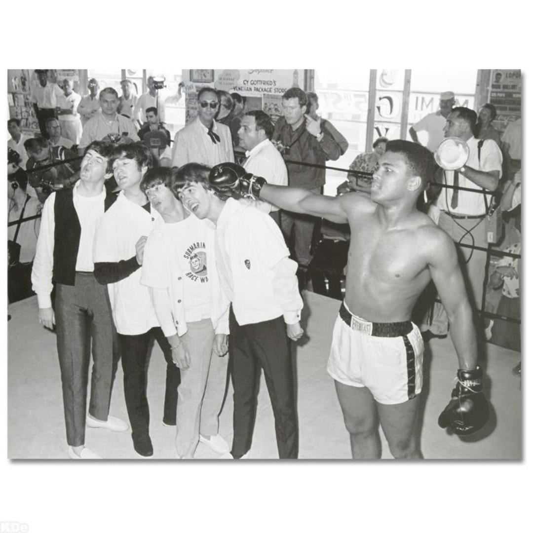 Own a piece of sports history with this Muhammad Ali and Beatles photo. Taken at the peak of his success as one of the greatest heavyweight championship boxers of all time, this photo is sure to complement any sports memorabilia collection. "Muhammad Ali Punching The Beatles" is a licensed photograph on Kodak Professional Endura paper. Measures approx. 40" x 30" (no border).