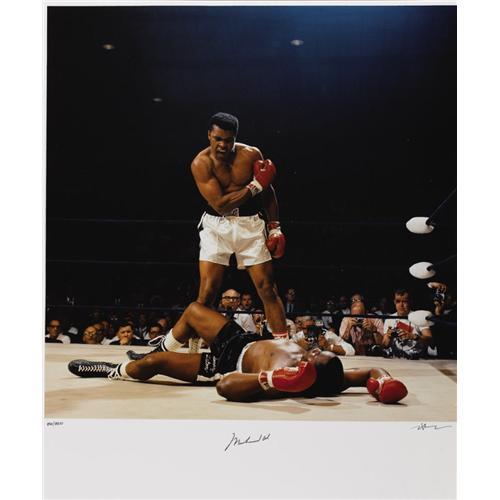 <B>Ali-Liston II Photograph by Neil Leifer, Signed by Ali.</B></I> In 1992, noted photographer Neil Liefer and noted author Thomas Hauser collaborated on a book about Muhammad Ali entitled "Memories." Hauser supplied the text and Liefer the photographs for this fine work. Presented here is an original photograph of Muhammad Ali by Neil Liefer, each of which has been signed by Liefer and comes with a letter of authenticity from him. Muhammad Ali has also signed each photograph. The signatures were obtained by Thomas Hauser and come with a letter of authenticity from him as well. Both the Ali and Liefer signatures are in ink along the white border. These original photographs routinely sell for thousands of dollars unsigned by Ali and Heritage is proud to present these beautiful examples all signed by "The Greatest." <BR><BR> Arguably the most famous photograph in boxing history depicting a snarling Ali standing over Liston in their second fight in Lewiston, Maine. The photo measures 20" x 24" and is # 86 in a limited edition of 350. <I>LOA from PSA/DNA.</B></I> <BR><BR><B>Important notice:</B> Heritage usually auctions material at the rate of 200-250 lots per hour. On some occasions eBay Live bid software or the Internet may not be able to keep up with the pace of the auction. We recommend placing a realistic absentee bid now as insurance to avoid disappointment. Occasionally the auctioneer may eliminate or reject an eBay Live bid, and the auctioneer may also reopen a lot after the close of the eBay live bidding (usually because we missed an audience bid), and may reject your bid even if it shows you as the winning bidder. By bidding via eBay Live, you agree that Heritage may award the lot to another bidder at its sole discretion under the circumstances described above or any other reasonable circumstances. Since eBay bids are not shown to us until we open the lot on the floor, we treat those bids just like floor bids. In most cases the floor responds before the eBay bid is presented to us, due to Internet lag time, so for consistency we have made it a policy that floor bids are always considered first over tie eBay live bids. Also please note that all Heritage lots purchased through eBay Live carry a 22.5% Buyer's Premium. Please make sure you read the Terms and Conditions before you bid. This lot is being auctioned in conjunction with a live floor auction by Heritage Galleries & Auctioneers. All final auction and invoice information will be supplied by Heritage Galleries & Auctioneers, and all other information should be considered preliminary. Lot:19167 <BR><BR><B>Winning Notification and Billing:</B> After the FINAL session in this auction is complete, Heritage will send e-mail and snail mail invoices. This process normally takes several days. All final auction and invoice information will be supplied by Heritage Galleries & Auctioneers, and all other information should be considered preliminary. <BR><BR>This auction will be conducted on a live auction floor and over the Internet through eBay Live. If you choose to place an absentee bid, please take a moment to <font color='#0000ff'><u><a href='http://pages.ebay.com/liveauctions/help/before/laabsentee.html'>learn how eBay Live absentee bidding works</a></u></font><font color='#000000'>