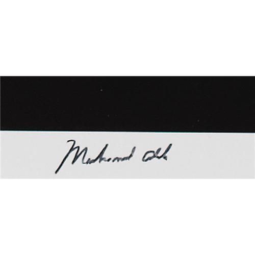 <B>"Ali In Tuxedo" Photograph by Neil Leifer, Signed by Ali.</B></I> In 1992, noted photographer Neil Liefer and noted author Thomas Hauser collaborated on a book about Muhammad Ali entitled "Memories." Hauser supplied the text and Liefer the photographs for this fine work. Presented here is an original photograph of Muhammad Ali by Neil Liefer, each of which has been signed by Liefer and comes with a letter of authenticity from him. Muhammad Ali has also signed each photograph. The signatures were obtained by Thomas Hauser and come with a letter of authenticity from him as well. Both the Ali and Liefer signatures are in ink along the white border. These original photographs routinely sell for thousands of dollars unsigned by Ali and Heritage is proud to present these beautiful examples all signed by "The Greatest." <BR><BR> Magnificent 1974 image of Ali in formal attire. The photo measures 20" x 24" and is # 82 in a limited edition of 350. <I>LOA from PSA/DNA.</B></I> <BR><BR><B>Important notice:</B> Heritage usually auctions material at the rate of 200-250 lots per hour. On some occasions eBay Live bid software or the Internet may not be able to keep up with the pace of the auction. We recommend placing a realistic absentee bid now as insurance to avoid disappointment. Occasionally the auctioneer may eliminate or reject an eBay Live bid, and the auctioneer may also reopen a lot after the close of the eBay live bidding (usually because we missed an audience bid), and may reject your bid even if it shows you as the winning bidder. By bidding via eBay Live, you agree that Heritage may award the lot to another bidder at its sole discretion under the circumstances described above or any other reasonable circumstances. Since eBay bids are not shown to us until we open the lot on the floor, we treat those bids just like floor bids. In most cases the floor responds before the eBay bid is presented to us, due to Internet lag time, so for consistency we have made it a policy that floor bids are always considered first over tie eBay live bids. Also please note that all Heritage lots purchased through eBay Live carry a 22.5% Buyer's Premium. Please make sure you read the Terms and Conditions before you bid. This lot is being auctioned in conjunction with a live floor auction by Heritage Galleries & Auctioneers. All final auction and invoice information will be supplied by Heritage Galleries & Auctioneers, and all other information should be considered preliminary. Lot:19169 <BR><BR><B>Winning Notification and Billing:</B> After the FINAL session in this auction is complete, Heritage will send e-mail and snail mail invoices. This process normally takes several days. All final auction and invoice information will be supplied by Heritage Galleries & Auctioneers, and all other information should be considered preliminary. <BR><BR>This auction will be conducted on a live auction floor and over the Internet through eBay Live. If you choose to place an absentee bid, please take a moment to <font color='#0000ff'><u><a href='http://pages.ebay.com/liveauctions/help/before/laabsentee.html'>learn how eBay Live absentee bidding works</a></u></font><font color='#000000'>