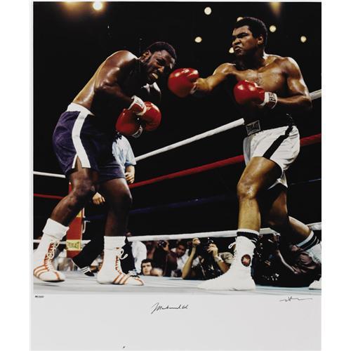<B>Ali-Frazier III Photograph by Neil Leifer, Signed by Ali.</B></I> In 1992, noted photographer Neil Liefer and noted author Thomas Hauser collaborated on a book about Muhammad Ali entitled "Memories." Hauser supplied the text and Liefer the photographs for this fine work. Presented here is an original photograph of Muhammad Ali by Neil Liefer, each of which has been signed by Liefer and comes with a letter of authenticity from him. Muhammad Ali has also signed each photograph. The signatures were obtained by Thomas Hauser and come with a letter of authenticity from him as well. Both the Ali and Liefer signatures are in ink along the white border. These original photographs routinely sell for thousands of dollars unsigned by Ali and Heritage is proud to present these beautiful examples all signed by "The Greatest." <BR><BR> A beautiful color action photograph from the war between Joe Frazier and Muhammad Ali entitled "The Thrilla In Manila. The photo measures 20" x 24" and is # 88 in a limited edition of 350. <I>LOA from PSA/DNA.</B></I> <BR><BR><B>Important notice:</B> Heritage usually auctions material at the rate of 200-250 lots per hour. On some occasions eBay Live bid software or the Internet may not be able to keep up with the pace of the auction. We recommend placing a realistic absentee bid now as insurance to avoid disappointment. Occasionally the auctioneer may eliminate or reject an eBay Live bid, and the auctioneer may also reopen a lot after the close of the eBay live bidding (usually because we missed an audience bid), and may reject your bid even if it shows you as the winning bidder. By bidding via eBay Live, you agree that Heritage may award the lot to another bidder at its sole discretion under the circumstances described above or any other reasonable circumstances. Since eBay bids are not shown to us until we open the lot on the floor, we treat those bids just like floor bids. In most cases the floor responds before the eBay bid is presented to us, due to Internet lag time, so for consistency we have made it a policy that floor bids are always considered first over tie eBay live bids. Also please note that all Heritage lots purchased through eBay Live carry a 22.5% Buyer's Premium. Please make sure you read the Terms and Conditions before you bid. This lot is being auctioned in conjunction with a live floor auction by Heritage Galleries & Auctioneers. All final auction and invoice information will be supplied by Heritage Galleries & Auctioneers, and all other information should be considered preliminary. Lot:19170 <BR><BR><B>Winning Notification and Billing:</B> After the FINAL session in this auction is complete, Heritage will send e-mail and snail mail invoices. This process normally takes several days. All final auction and invoice information will be supplied by Heritage Galleries & Auctioneers, and all other information should be considered preliminary. <BR><BR>This auction will be conducted on a live auction floor and over the Internet through eBay Live. If you choose to place an absentee bid, please take a moment to <font color='#0000ff'><u><a href='http://pages.ebay.com/liveauctions/help/before/laabsentee.html'>learn how eBay Live absentee bidding works</a></u></font><font color='#000000'>